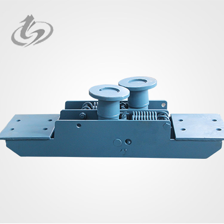 無極繩絞車在起伏變化巷道運行時,鋼絲繩的上漂與拉棚,直接影響著系統(tǒng)運行甚至巷道支護的安全。因此,為防止、鋼絲繩上漂,出現(xiàn)拉棚現(xiàn)象、并有效地防止車輛掉道,就必須采用可靠的主壓繩輪組。在軌道凹點處采用強制性壓繩,并防止兩鋼絲繩由于軌道不直而相互交叉。